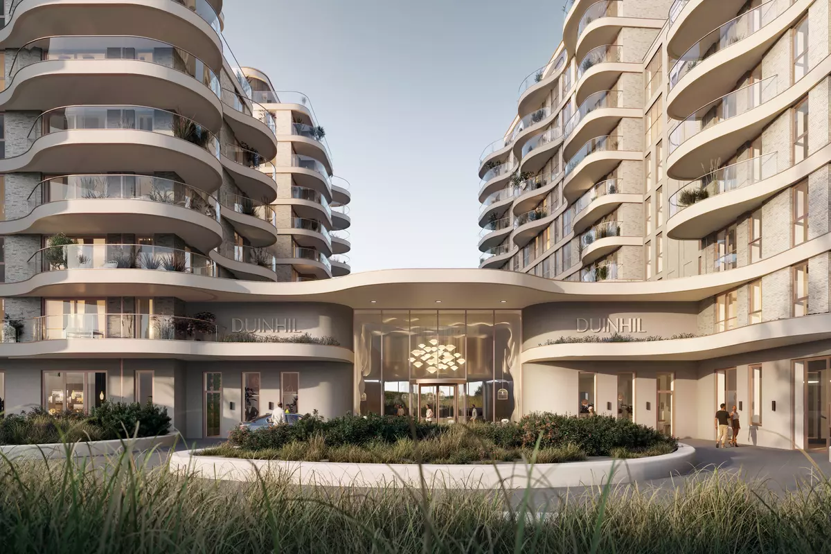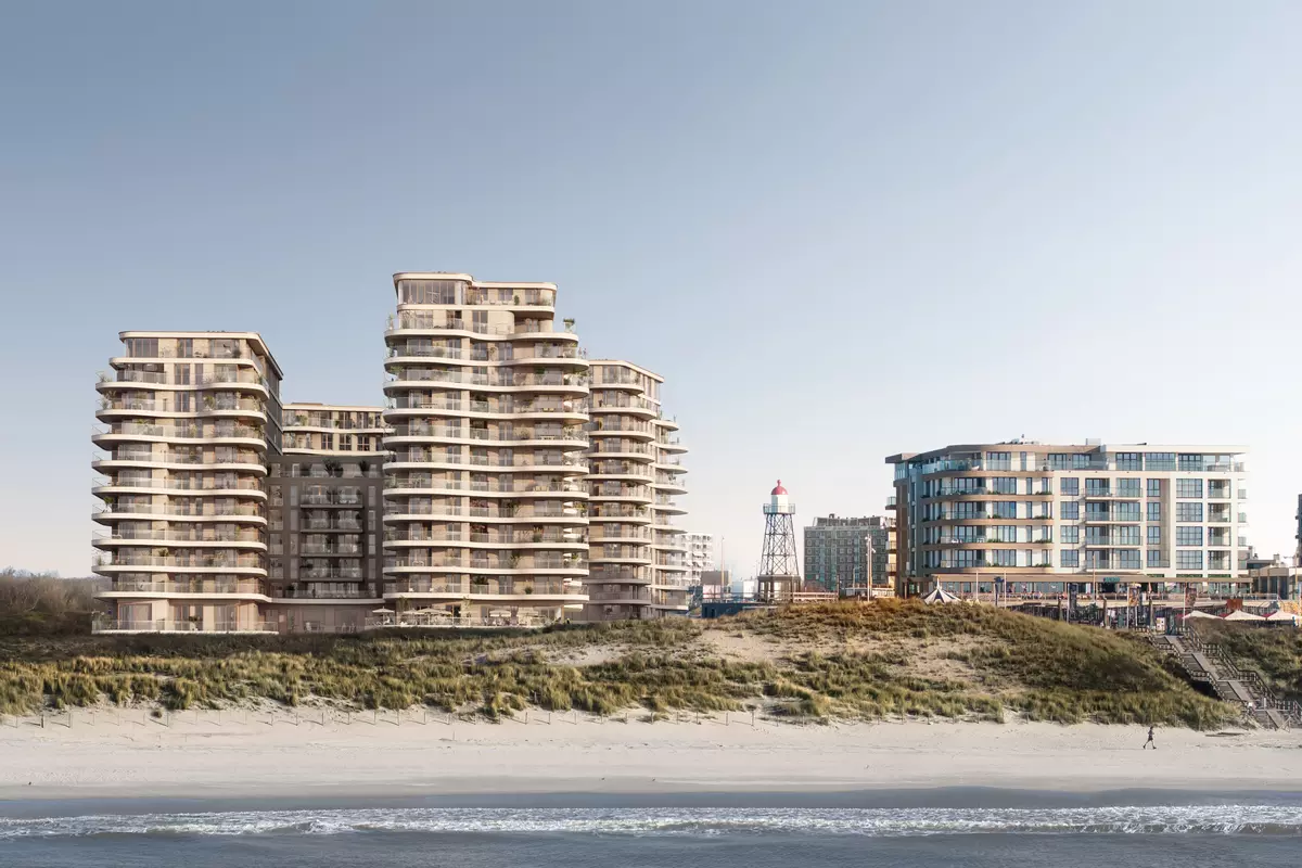 Situé directement sur la plage, face aux dunes, BESIX RED, Chase RED et les architectes Van Egmond, Duinhil proposent un développement à usage mixte de 49 429 m² comprenant 145 appartements haut de gamme, un hôtel bien-être de 152 chambres, un restaurant et un fitness avec spa. Le design écologique de Duinhil s'inspire des lignes ondulantes de la nature environnante, où la mer et la dune, qui s'étend jusqu'à la façade, jouent un rôle prépondérant. Dans les appartements, le lien avec la nature est omniprésent grâce à l'utilisation de grandes façades vitrées, de grands balcons et de terrasses spacieuses. L'utilisation de matériaux faciles à entretenir, la variation des textures et des matériaux, l'enrichissement par des détails traditionnels et l'utilisation d'une palette de couleurs naturelles permettent à Duinhil de s'intégrer organiquement dans l'environnement.